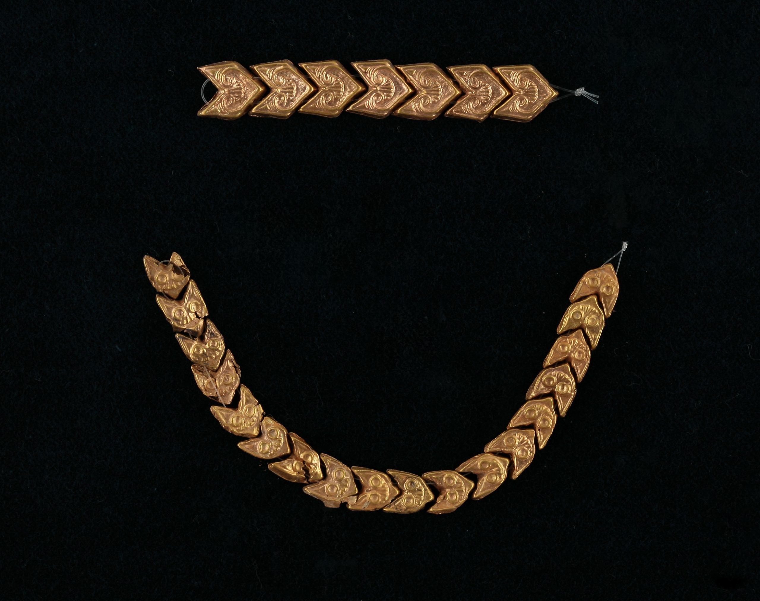 Τα χρυσά έργα τέχνης που εκτίθενται στα αρχαιολογικά μουσεία της Μεσσηνίας προέρχονται από ταφικά μνημεία, όπου είχαν εναποτεθεί ως κτερίσματα στους νεκρούς. Στην πλειονότητά τους χρονολογούνται στη μυκηναϊκή περίοδο. Επιδέξιοι τεχνίτες αποτύπωσαν έκτυπες ή σφυρήλατες μορφές, παραστάσεις και διακοσμητικά μοτίβα σε πολύ λεπτά φύλλα χρυσού ή στη σφενδόνη σφραγιστικών δαχτυλιδιών. Ξεχωρίζουν τα χρυσά κτερίσματα από τον λακκοειδή τάφο του Γρύπα Πολεμιστή στον Άνω Εγκλιανό, από τους θολωτούς μυκηναϊκούς τάφους της Περιστεριάς και από τους θαλαμωτούς τάφους του μυκηναϊκού νεκροταφείου των Ελληνικών Θουρίας. Πολλά από αυτά ράβονταν πάνω στα ρούχα των νεκρών, φέρουν θρησκευτικούς συμβολισμούς και διαπνέονται από την προσδοκία για την αναγέννηση της ψυχής.